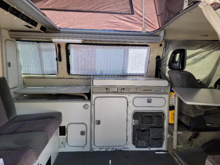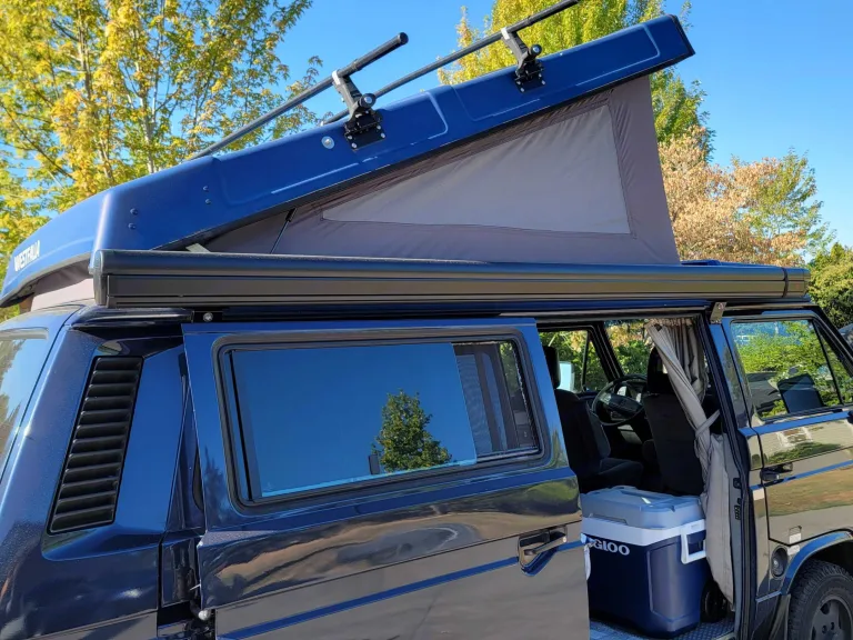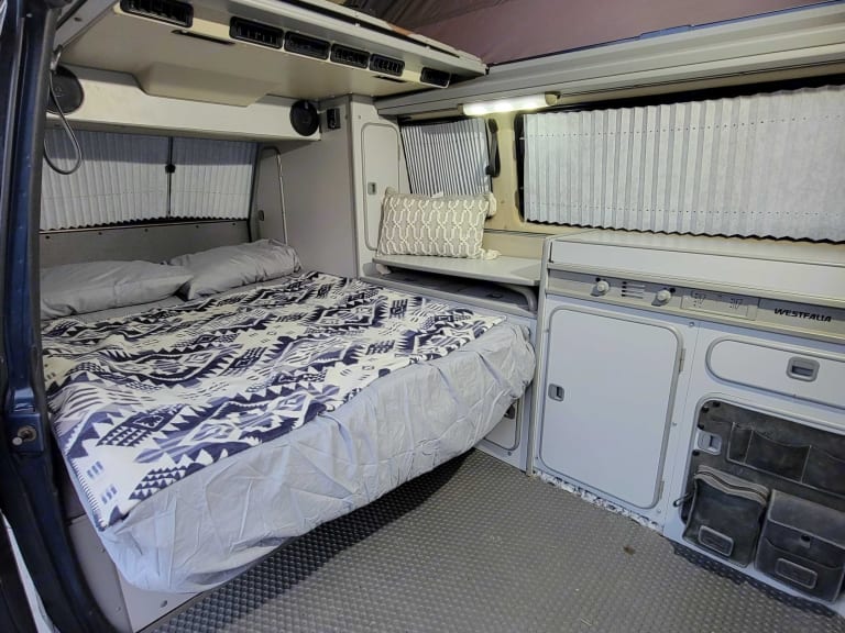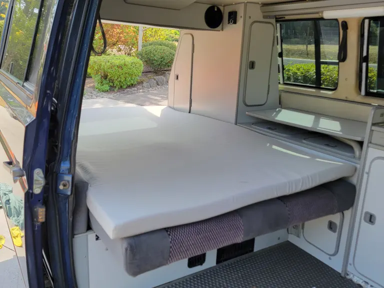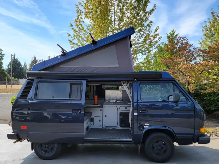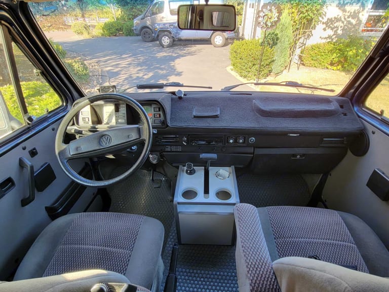 1990 VW Vanagon Westfalia Full Camper Van - Automatic Transmission.Jilly is a well-loved and cared for Vanagon camper with modern mechanical upgrades to keep you on the road.This classic camper is powered by a newer 2.5L Subaru engine behind an automatic 4-speed transmission. It drives with the reliability as a Subaru Outback but has the nostalgic appearance only a VW camper can provide.The Vanagon camper will seat 4 passengers, but it is best for 2 adults and 2 children. It will sleep 2 campers on the bottom pull out bed and another 2 can sleep on the top bunk when the pop-up top is opened.Amenities include a sink with onboard water tank, 2-burner propane stove, and a cooler. For chilly nights the built-in propane heater will keep the inside nice and warm.This van has recently completed restoration with new reupholstered interior and is ready to go on an adventure. Guaranteed to get thumbs up as you pull into any camp ground.Jilly is considered “road trip ready.” Whether you are flying in from out of town or looking to explore your own backyard, all you really need to do is stop for groceries before hitting the road. All cookware and tableware is included, as is bedding and a wide array of camping gear. You’ll be sent a detailed list of all the items included in the van before your trip so you can plan accordingly.What's includedFresh linens, cookware, utensils, and up to 4 camping chairs provided upon request.Airport pickup from Portland International Airport available upon request.