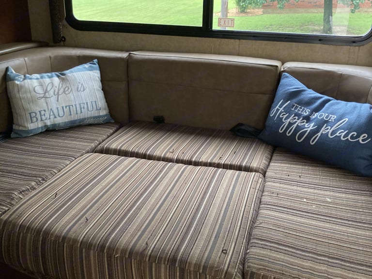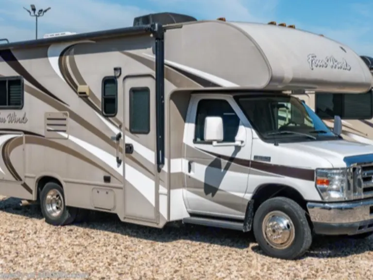 This RV is nicked named The Gypsy Queen for good reason ... she loves to hit the road!! She is a Class C Thor Four Winds Motorhome. Being just 24 ft in length, she’s easy to drive but has plenty of space on the inside. Equipped with a Queen sized bed, overhead bunk, and dinette conversion bed, she can comfortably sleep 5 adults. There is a kitchenette with sink, refrigerator, microwave, and range which includes cookware, dishes, cups, & utensils. Her bathroom has a sink, stand up shower, and toilet. She’s not one to leave you without entertainment. She has a 32" TV with Roku, so you can still catch up on your favorite shows. Outside she has a full sized retractable awning that is great for watching sunsets or just getting out of the heat! Take a ride with The Gypsy Queen and see why she is the sweetest little thing in Texas!!