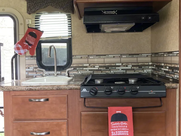 The Gypsy Queen is a breeze to set up at any campground. Her electrical connection is located on the drivers side of the RV and simply plugs into the electrical supply of the campground. The fresh water line and sewage line are stored in the rear exterior compartment on the passenger side. Both of these connections are located on the drivers side of the RV and simply connect to the campground connections.
