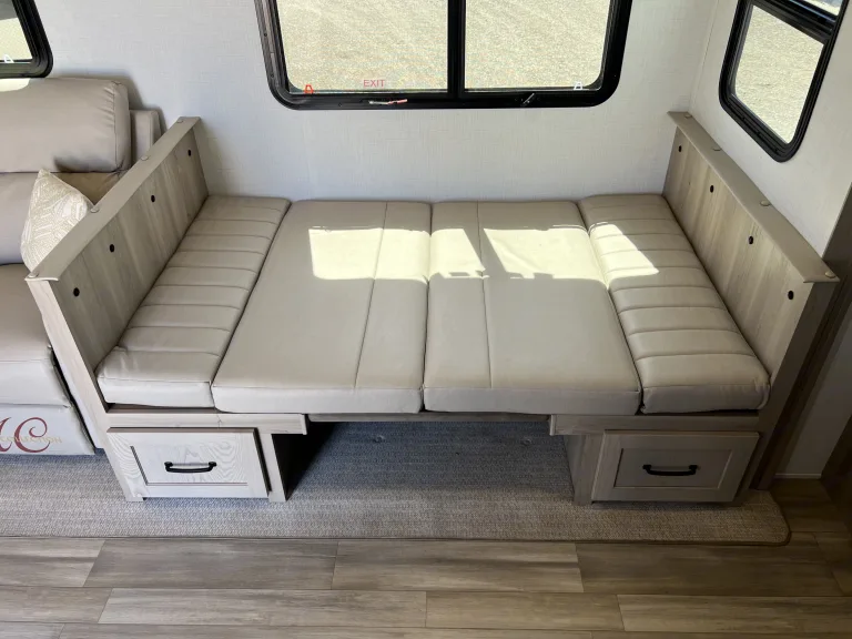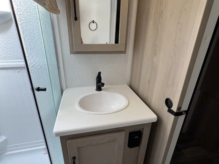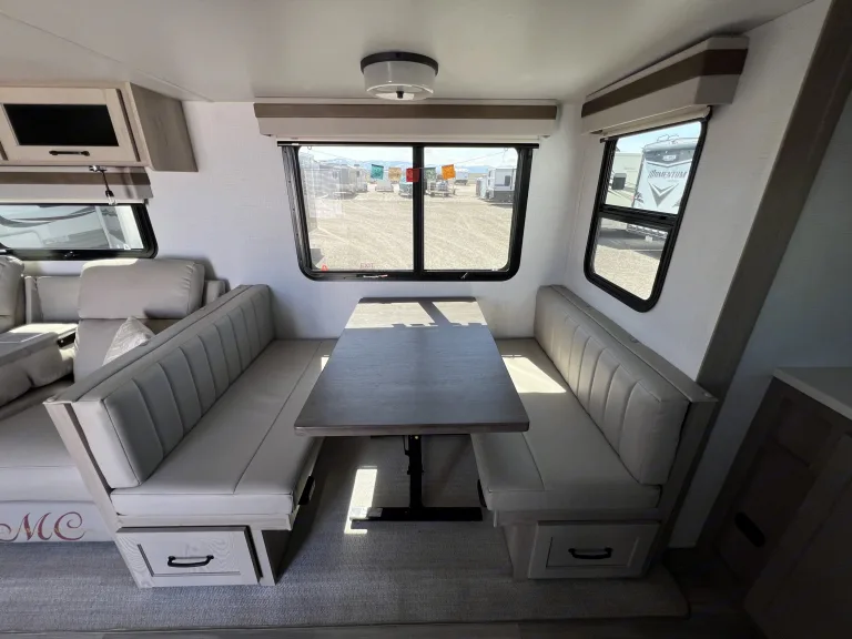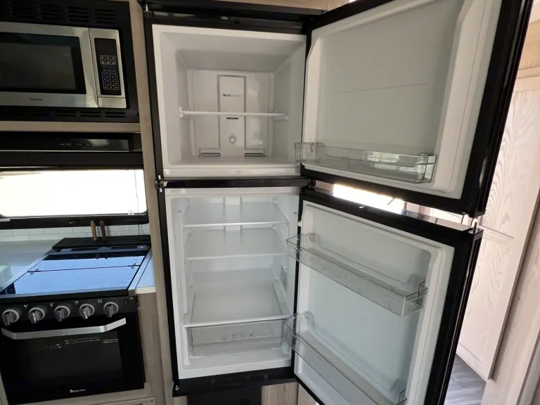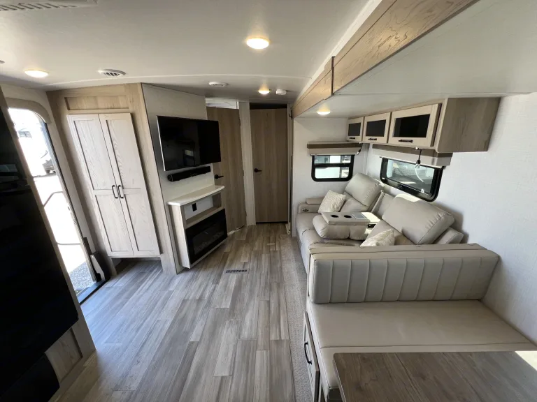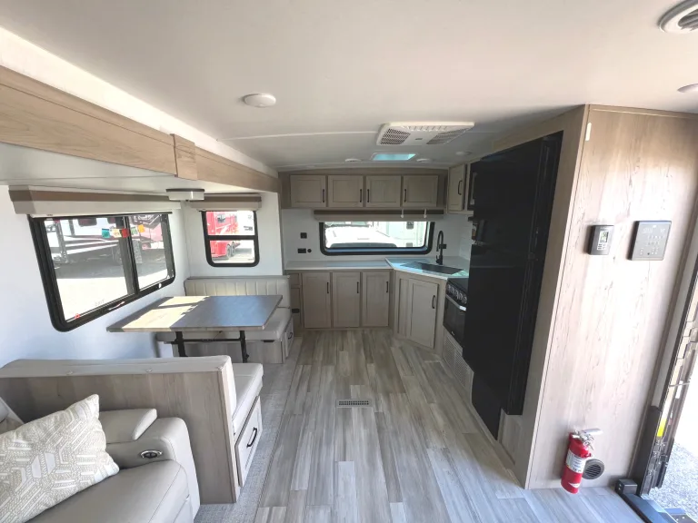 - Spacious Comfort – A full front kitchen (yes, full), a large slide-out living room, and a private queen bedroom with plenty of storage. Room to stretch, relax, and not bump elbows while making coffee.