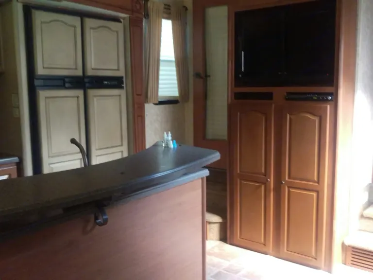 Plenty of living area. Master bedroom with queen size bed. Rear space with 2 queen size bunks that drop down or set up as a sitting area, great for kids. Queen size loft too. Camper can sleep 8 comfortably. 2 full baths. Surround sound system and 2 TV's ready for a movie night. Enjoy your camping experience in all the comforts of home
