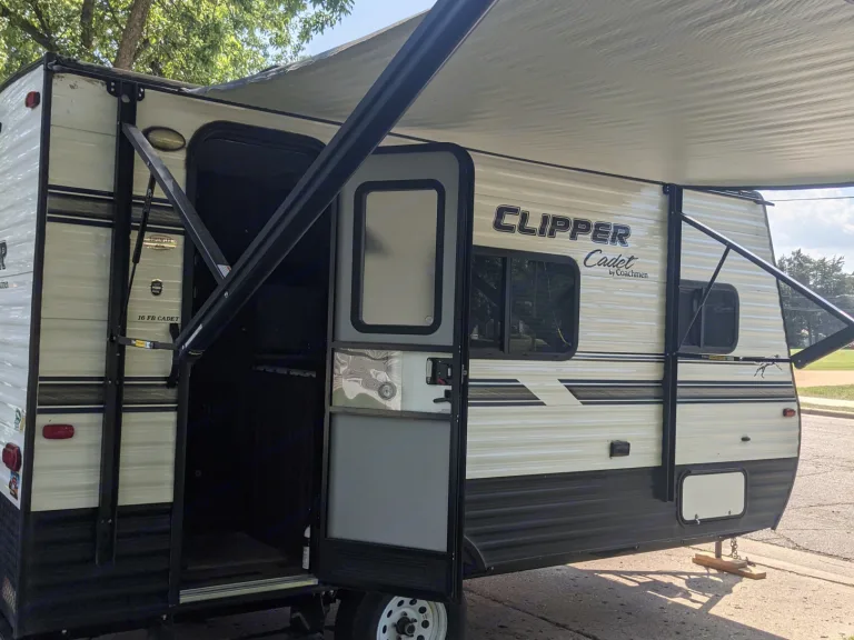 Cute and cozy 2019 Coachman Clipper Cadet 16' travel trailer perfect for the solo traveler, couples, or families with one or two small children. An easy tow that is perfect for the beginner or the more advanced hauler.What's includedKitchen comes fully stocked with cookware, tableware, flatware, etc. Cooking indoors is easy with the two burner stove top and toaster oven/air fryer combo and surprisingly spacious compact refrigerator. Includes the use of igloo ice cube maker to ensure those cocktails are always served ice cold.Air conditioner and heater work great so you will be comfy no matter what the Minnesota weather brings.We supply the travel trailer with all tools necessary for connecting to sewer, water, and electrical hookups.We also provide at no additional charge: