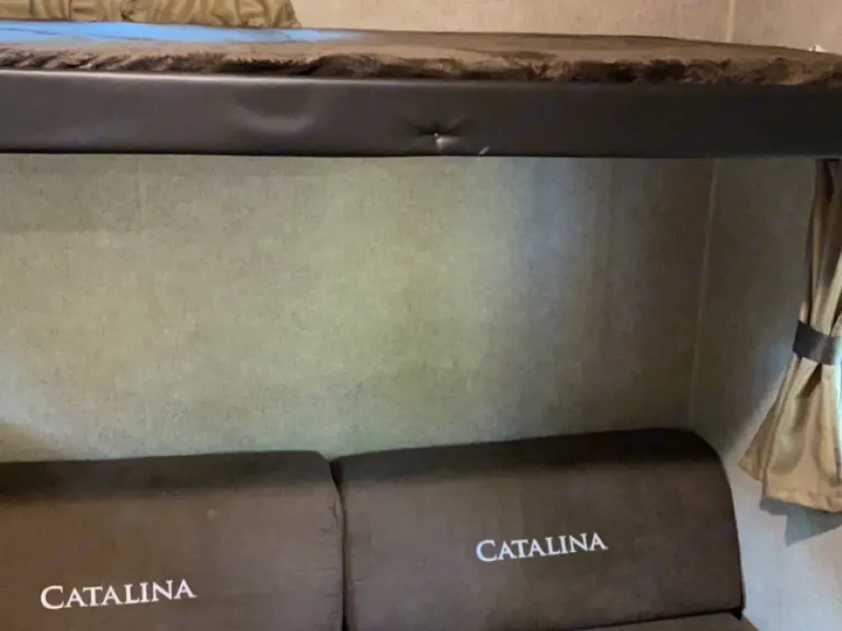 2018 30’ Coachman Catalina legacy edition. Has a private bunk house with 3 beds and a fold out couch. Main living area has wrap around dinette and fold down couch with the slide out. Private master bedroom with queen size bed. TV/DVD player in main living area and a TV in the bunk house. Outside has a an outdoor kitchen and under camper lighting to make it easy to spot at night. What's includedPlastic ware and paper plates, trash bags, sheets/blankets/pillows. Outdoor grill.