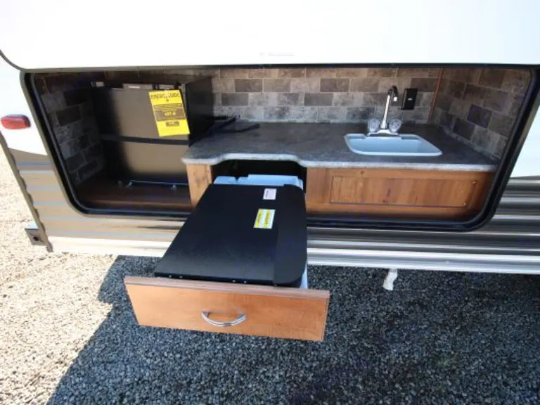 This camper is perfect for the family! Both the parents and the kids have their own separate rooms! This camper has a slide out to make it feel bigger and has an outdoor kitchen that can be enjoyed by everyone!