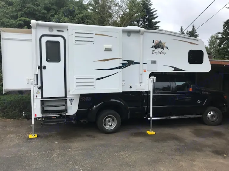 2018 Eagle Cap 1165 Triple Slideouts. 100 sq ft of living space with a private queen mattress. This camper comes with a 2014 Ford F350 Loaded. Airbags and upper/lower stableloads installed.