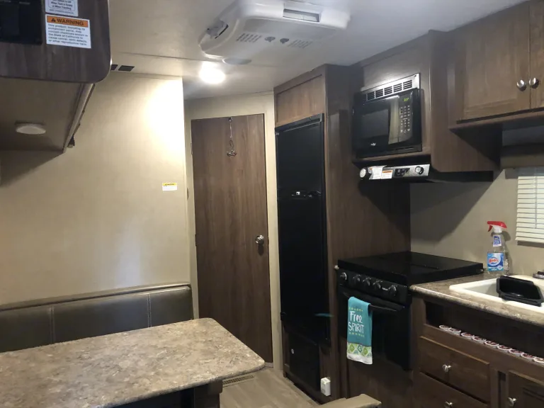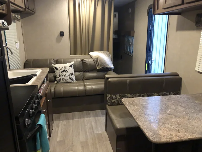 Light and small enough to tow easily and spacious enough to sleep 6 with the full-size bunks, dinette and easy pull-out sofa sleeper in addition to the Queen size bed. If you want to double up, you can fit up to 7-8 people. Barely used and in immaculate condition. Dry weight 4790, with water 5230 We have a generator for use if you want to rent it for $25/day What's includedWe will supply the toilet paper and limited cleaning supplies. RecommendationsOur trailer fits nicely almost anywhere. It has all the comforts of being your home away from home.Other things to noteWe are fine with completely potty-trained dogs (we bring ours camping too) but ask that you not leave a puppy unattended especially for its propensity to chew. Our trailer has only been used a few times and we would like to keep the almost like new quality.