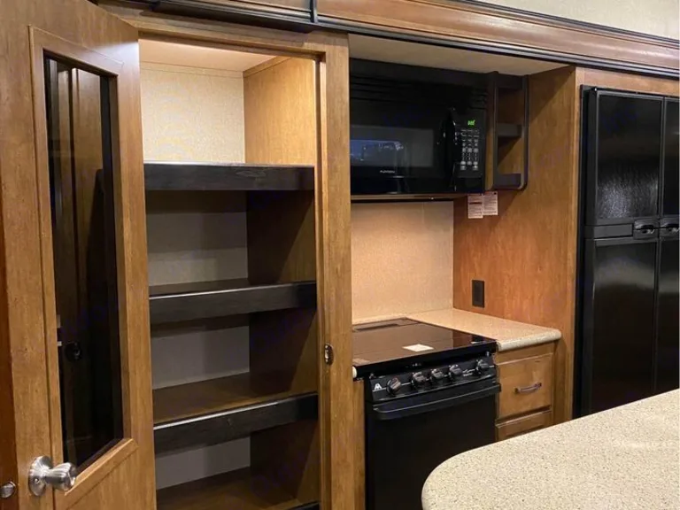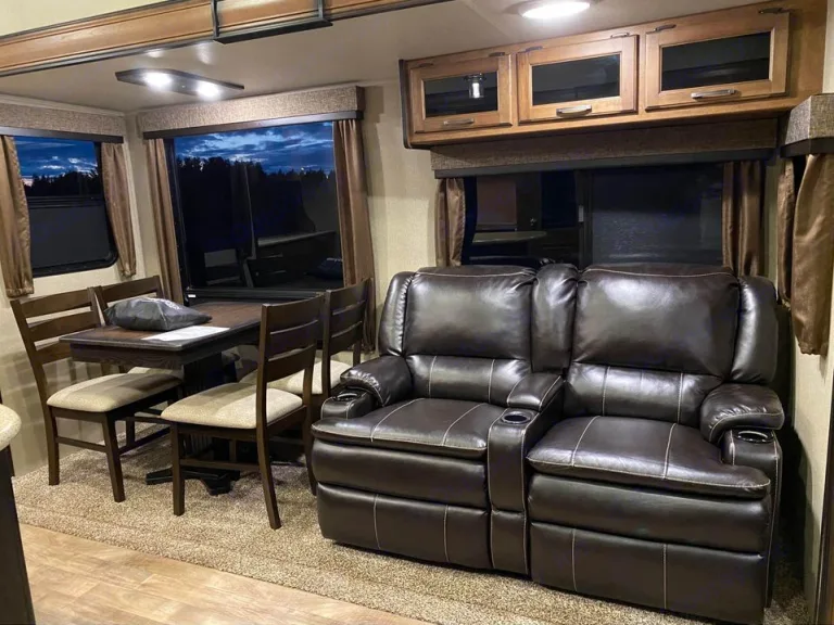 Our Reflection by Grand Design 337RLS 5th wheel offers luxury along with providing easy towing with the aerodynamic front cap with Max Turn radius. The Universal All-In-One docking station, LP Quick Connect, 2 One-Touch electric awnings with LED lights, and self leveling hydraulic jacks make for a quick and easy set up. It also has the Arctic 4-Seasons Protection package which allows you to camp anytime of the year!