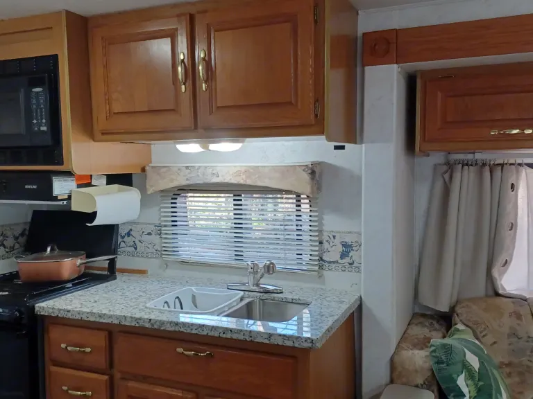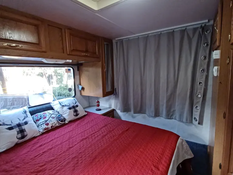 Very clean, lots of updates. Queen size bed with memory foam mattress, full shower, fully equipped kitchen with basic utensils. Total blackout curtains for comfortable living, LVP floors for low maintenance, and granite countertops for that urban feel. Slide out provides a larger living space. Upgraded Bilstein shocks for a smooth ride. Bedding sets can be provided upon request. Super safe private parking available for your car during your trip and to ease up logistics.This non-smoking, freshly updated recreational vehicle has low rental rates, with a 2 night minimum and flexible pickup and drop off times in Ben Lomond, CA, or we can deliver and pick up for a nominal fee.This Class C Motorhome is 32 feet and can sleep up to 5 people. It has one slide-out, an automatic transmission, a gasoline fuel type, and fuel economy of 10 MPG.Before we forget, this RV rental also has bike rack, cargo rack, and bedding set add-ons available. Interested in learning more? Scroll below for more add-on details, rules, insurance coverage, rates and floor plans.