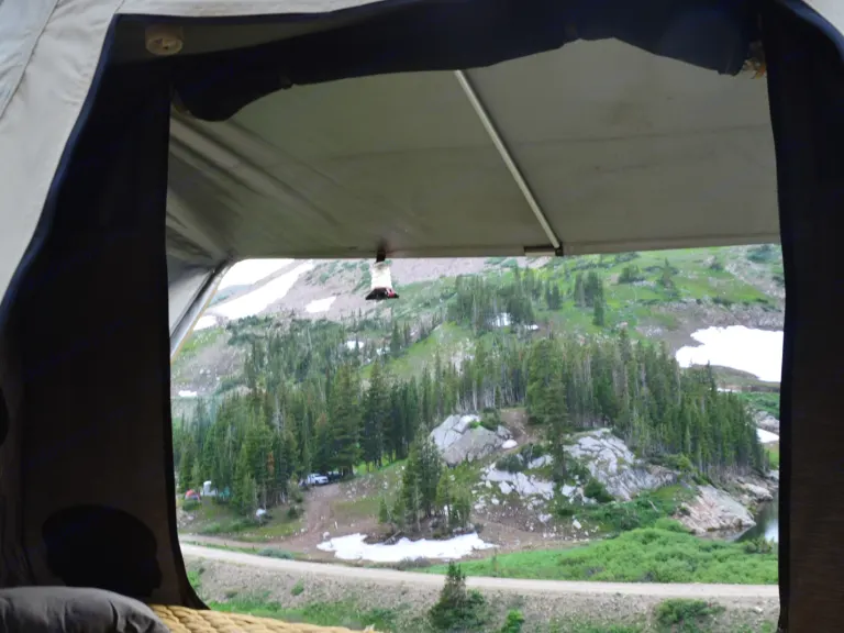 Custom made tiny trailer that is 4'x8' with a rooftop tent by Gofsr the Adventure 60 on top. Below is a cargo storage area filled with all the essentials to go camping. Also features an exterior storage area for any other gear. Our trailer is extremely light so it can be towed behind anything with a 2" ball and is tiny so it can be parked almost anywhere.