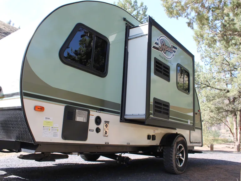 Get outside! This Forest River Rpod 182g is ready for family adventure!A slide-out equipped trailer with a kitchen, wet-bath, two bunks, and a dinette that turns into a queen size bed make this a fun cabin-on-wheels for your next adventure!Sleeps four comfortably with two single bunks (great for kids!) and a dinette that easily folds into a queen bed (for the adults of course).Fully equipped with an indoor and outdoor kitchen so you are always with the action. Inside a two burner stove, refrigerator, microwave, and sink. Outside includes sink, lighting, and accessory two burner stove (quick connects to on board LPG).This Rpod is equipped with dual 20lb propane tanks with automatic switch over and dual batteries for extended boondocking. Refrigerator also runs on propane, battery, or electricity when plugged to shore power.Sway bar equipped hitch is included as standard equipment for safety. This trailer is equipped with trailer brakes and a 7 pin connector.A set of ceramic plates, bowls, and silverware is included as well as pots and pans. A starter of paper plates and basic supplies is also included.Now offering free delivery within 30 miles of Bend, OR when available. Please contact us first to ensure we can accommodate. Outside 30 miles $1 per mile (one way rate for delivery and pick up).Additional information:Let us know where you are going in the booking request. We will do what we can to help you out and make this RV ready for you!Please note the new 'Alvord' fee. The miles of gravel roads and fine dust lead to a full day of additional maintenance, cleaning, and repair. We want to keep our trailer affordable, but the wear and tear, cleaning, and maintenance from this remote location is costly.We try to accommodate the family experience while keeping it real for us. WeAdditional Information:-This RV weighs about 3,500 lbs fully loaded.