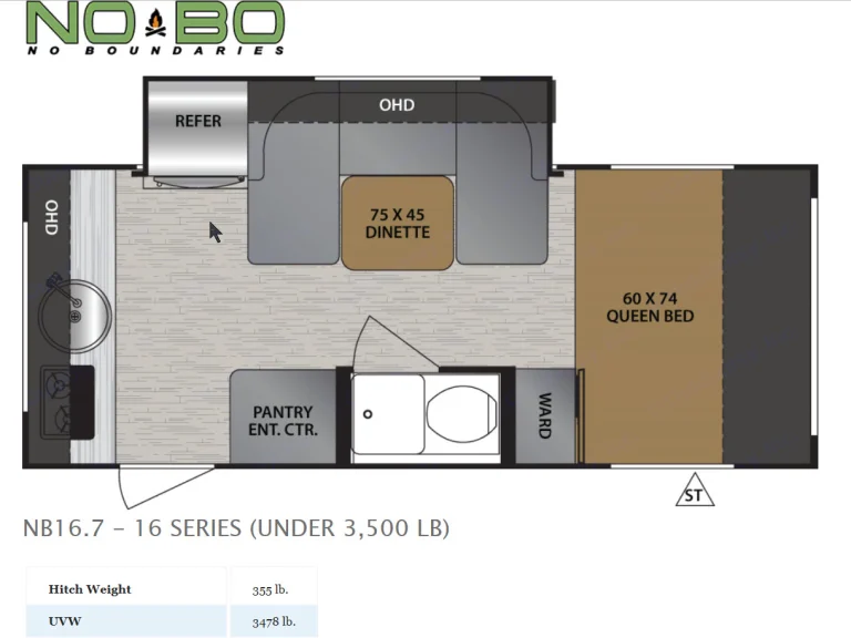 This unit is an upgraded version of our other NoBo 16.7 and has an upgraded Mattress with Memory Foam Topper and upgraded kitchen/tableware along with a roof top case to hold camping/travel extras up and out of the way.What's includedKitchen: Pots, Pans, Utensils, Plates, Bowls, Flatware are included
