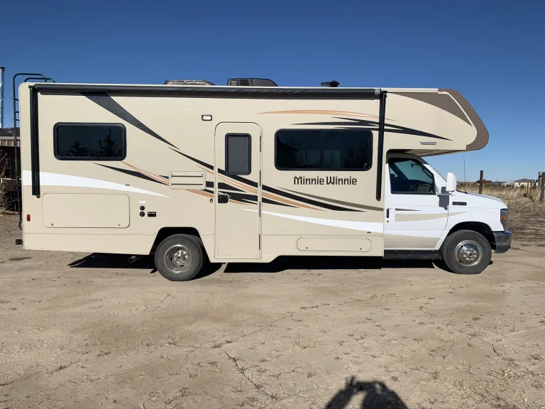 This is a great travel RV that does great in the mountains of colorado. We have it all set to go with everything you need to have a wonderful travel experience without all the extra fees. We know how to RV and we will help make sure your trip is all about the adventure without the learning curve. This RV’s size makes it easy to drive and can get into all RV campgrounds. It has a king bed over the cab, a queen in the back, the couch pulls out to a bed, and the table folds into a bed. Linens, dishes, cookware, camp chairs, folding table, and a charcoal barbecue grill will all be included. If needed we have a hitch cargo rack, Coleman marine cooler, 3 man quick pitch tent. We will make every effort to outfit you for your adventure. You are also welcome to store your drop off vehicle in our garage while you are on your adventure so no extra trips taking up your vacation time. We are 25 minutes from DIA and our route bypasses all Denver Traffic from the Airport to the RV.