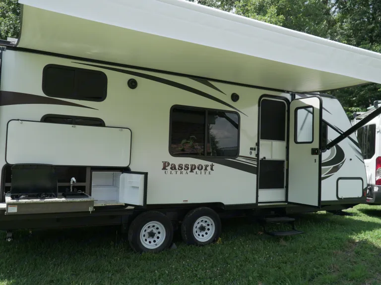 Lots of features in a lightweight trailer big enough for the whole family. You will love this set-up for your next adventure in the Shenandoah Valley or beyond!Dry weight 3950 lbs/ Gvwr 5400. Tow with most SUVs or we can deliver. To tow you need 2 5/16" ball, 7-pin round trailer connection and functioning brake controller.Sleeps up to eight with queen-size murphy bed, double-size bunkbeds, and convertible dinette. Privacy curtains for bunks and queen/murphy. Bonus!!! Murphy bed can easily be put up for extra floor space and reveals a sofa to sit on--perfect for reading or watching TV on a rainy day.Other features: