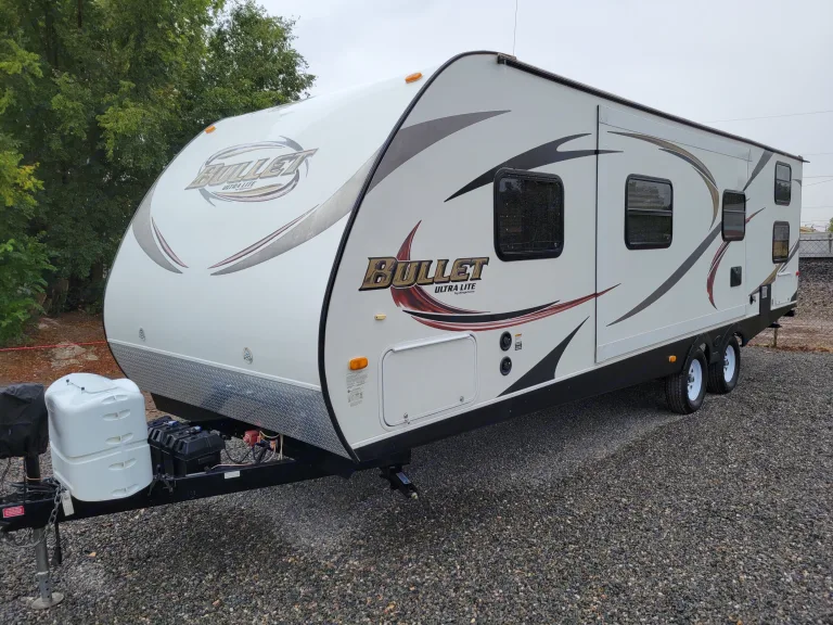 2012 Keystone Bullet 281BHS travel trailer, ultralight series at #5050 dry, 31' long, 1 big slideout, sleeps up to 8 with bunks, dual batteries, dual propane tanks, 360 watts of roof mounted solar panels, weight distribution hitch included. Kitchen is furnished: dishes, pots/pans, cooking and eating utensils, coffee maker, toaster, cutting board, dish strainer, cleaning supplies. Optional bedding/towels for $50 per reservation. Generator rentals available $35 per night or $149 per week. NO Smoking of any kind in all 505 RV Rentals. This unit is pet friendly: 1 dog is allowed with prior approval. Not available for Burning Man event or to be taken to Chaco Canyon/unmaintained roads.