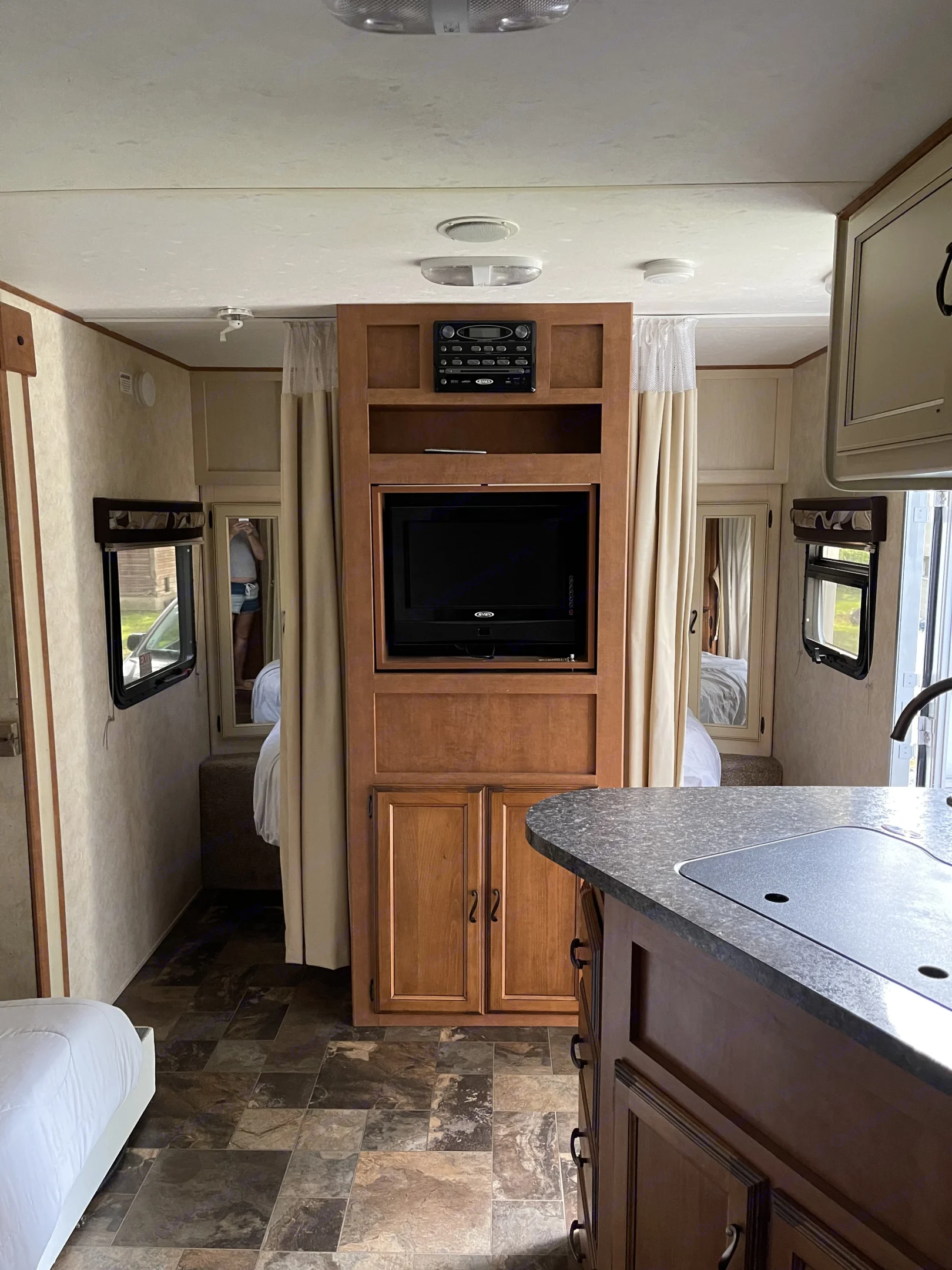 Nice clean camper and we want it keep it that way.Other things to noteThe beautiful Lake Michigan beach is close in vicinity. This trailer does have an inside kitchen as well as an outside kitchen- but there is not a table or chairs inside unless requested - it does have 3 beds to sleep 5 total- see pictures for more details. This trailer is to accommodate comfort in sleeping. The cushions are better than your average trailer cushions but are firm. If you prefer the inside bunk beds removed to make it into just a sleeper of 2 please request. The inside bunk beds can be removed and then there is a space for table and chairs.Trailer is not available for pickup or drop off on Saturday- sunset to sunset Jewish sabbath observed so it would need to be picked up before sunset on Friday and a drop off on Sunday.