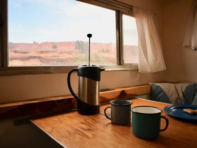 This camper is a purposeful eco-conscious experience - providing battery lights, no humming generators or appliances, instead experience quiet, peaceful solitude.