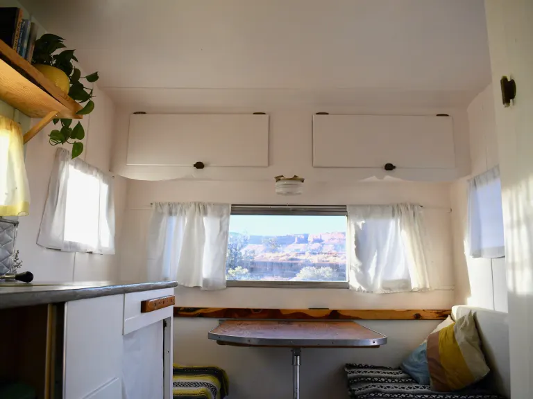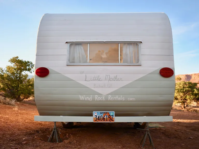 We strive to make your experience comfortable so you can fall in love with the landscape that captivates our hearts. We provide a welcome book with information about the camper, the area's amenities, cool hikes and spots to see, and leave no trace guidelines to help you be a better steward of the land. Please reach out to us with any questions- we want you to enjoy your travels!This vintage trailer is available for Delivery Only. What's includedFresh linens, cookware, cutlery, cups and plates, french press coffee, first aid kit, and camping chairs. RecommendationsTour the unique landscape of Capitol Reef, hike through the forest on Boulder Mountain, enjoy a weekend among the aspens at Fish Lake. This little camper is a great getaway whether you're seeking a unique desert experience or a cool evening by the lake. Other things to notePlease note, this camper is for DELIVERY. Equipped with a limited water supply. The camper can hook up to electricity and water where available.