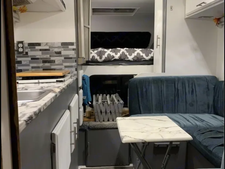 This is one of the most affordable private options you’ll find for accommodation in the big bear area. The queen size over the cab bed has been replaced with a brand new memory foam mattress.