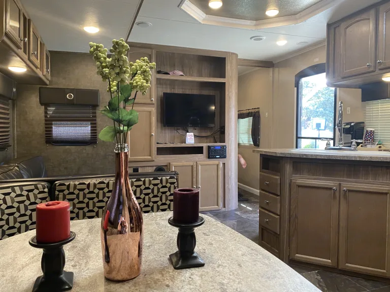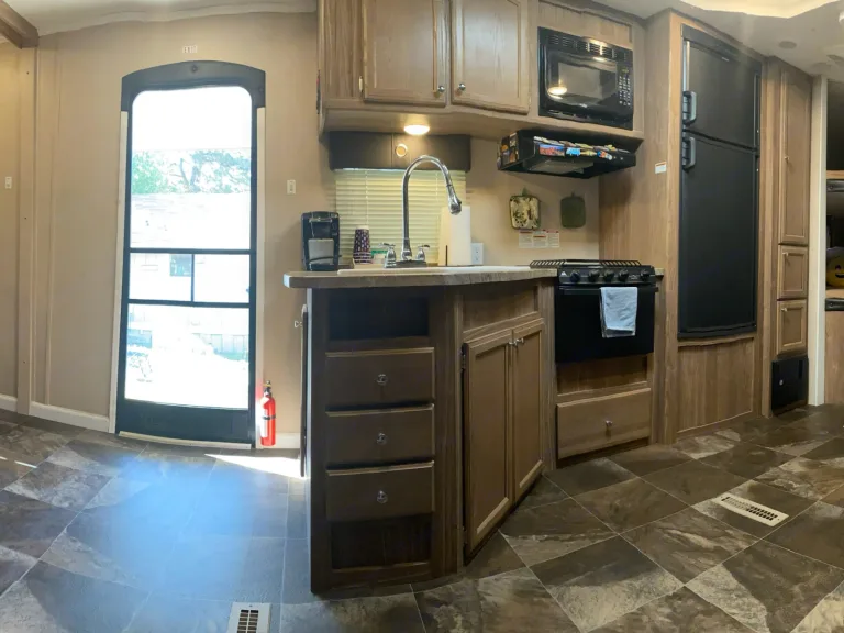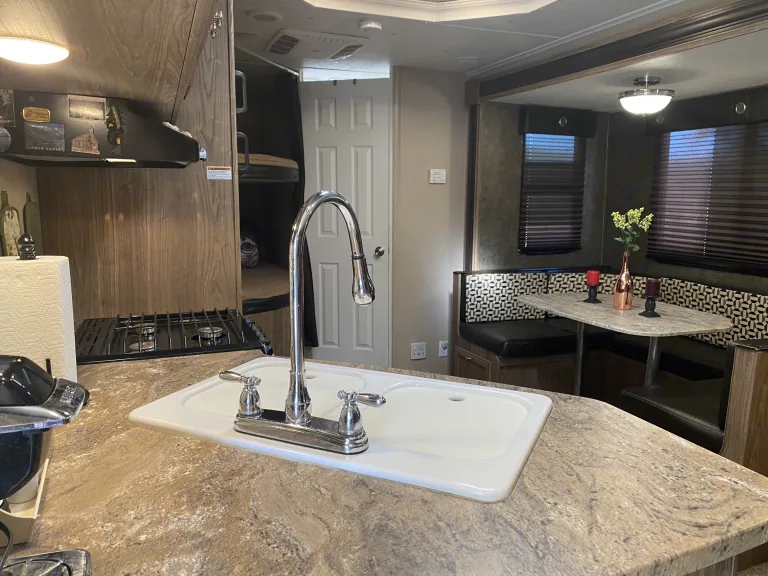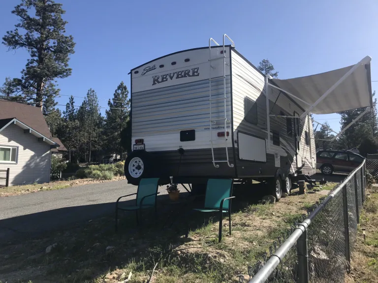 Extra roomy, with high ceilings. Sleeps 5 (includes Master Room & Bunk Beds). Bed Linens included - towels not included. Other things to noteNo kids, no pets. We will only rent with in Big Bear, & the site must be a “full hook up” site.