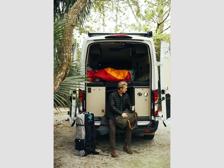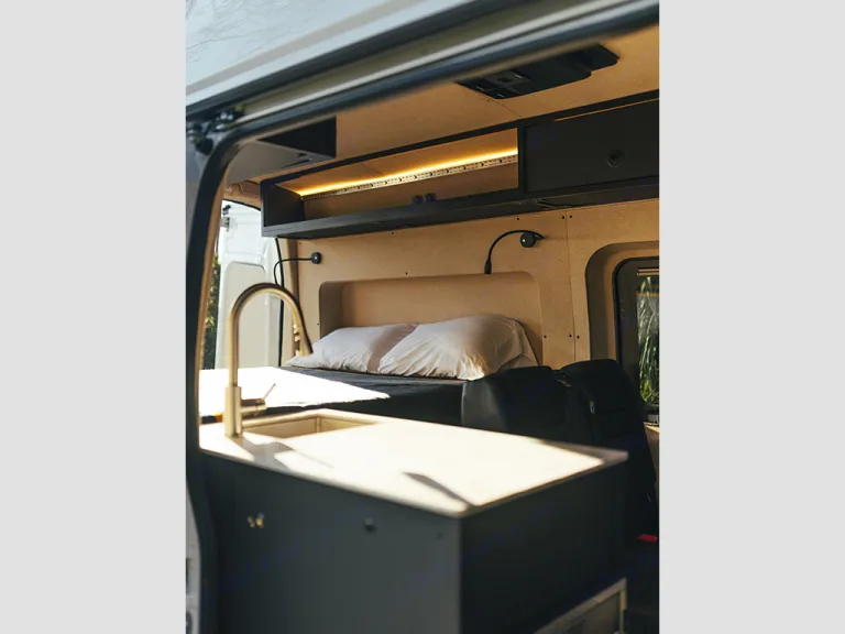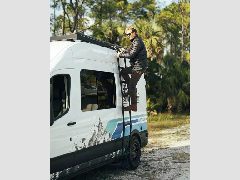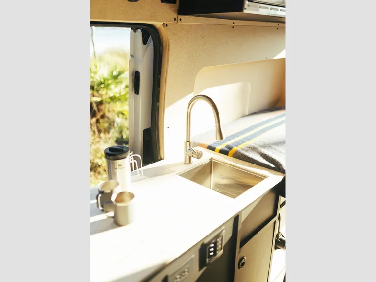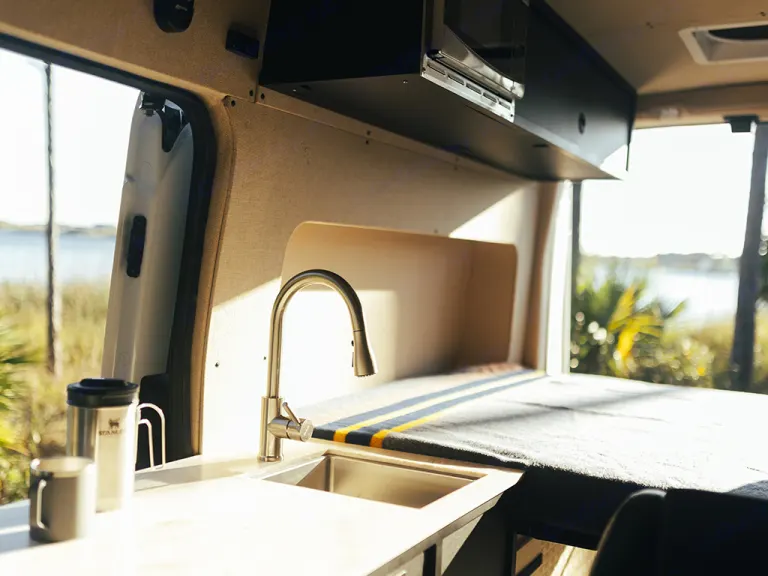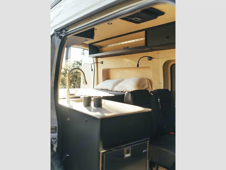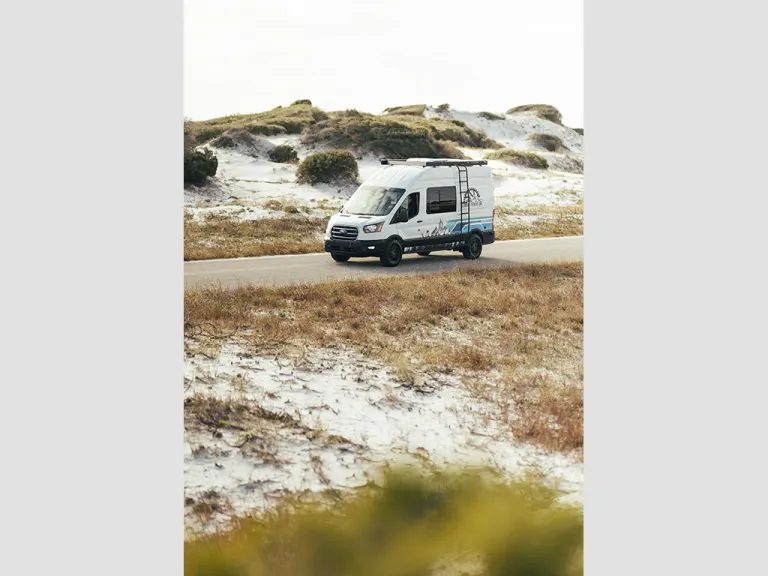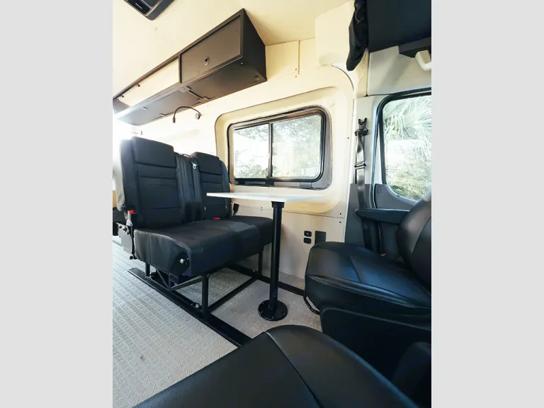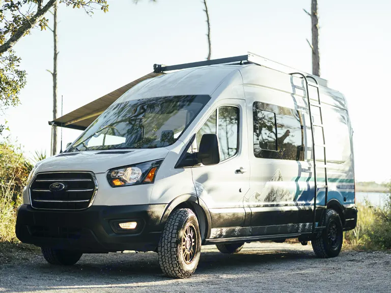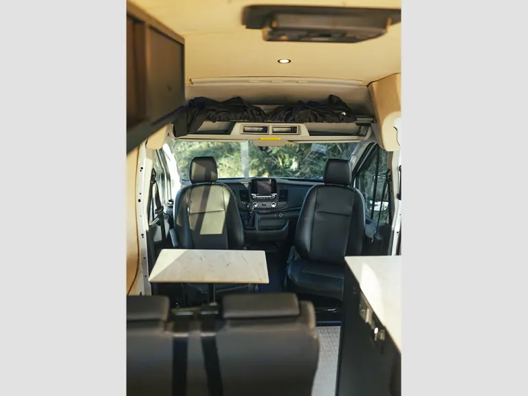 Everest is a high roof 2020 Ford Transit 148" wheelbase that has been converted into an adventure beast with everything you need to live off the grid or travel the open road. This van comes fully loaded with seating for 4 people, and 2 beds for super comfortable sleeping. This van features an isotherm fridge for food and drink storage as well as running water with a 21 gallon fresh water tank, on demand hot water and an outdoor shower for all of your dirty adventures. The van features 200ah of lithium Battleborn house batteries which charge via 200 watts of solar, while you drive, or with a shore power plug.Everest is Great For: