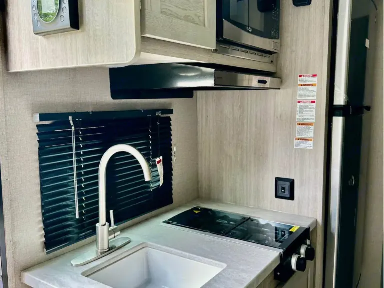 Great things come in small packages. This travel trailer is only 20 feet long but has everything you need for a fun getaway. Nearly brand new it creates a clean and comfortable home away from home for your family. It has a queen size bed for adults and two twin size bunks for the kids. If you need room for one more the sofa also makes into a bed. The bathroom contains a good size shower and flush toilet. The compact kitchen includes a large fridge with separate freezer, two burner stove and sink. The trailer also has a JBL sound system and power awning and awning lights. There is ample outside storage for toys, fishing gear, extra chairs, etc. a little nervous about towing? This compact trailer is pretty smooth especially with the sway bars and weight distribution hitch. Just be sure to swing wide. Also, it doesn’t require a full size truck. If your vehicle’s towing capacity is at least 4,300 lbs you are good to go. What's included• Sleeping bags and chairs (2 each) for the kids.