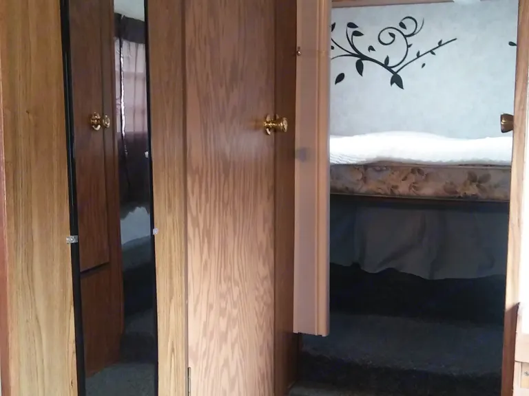 Camper has a queen size bedroom a fold out couch dinning area full kitchen and bathroom. Located in a quiet country location and only 10 min from town/lake/water park ect.