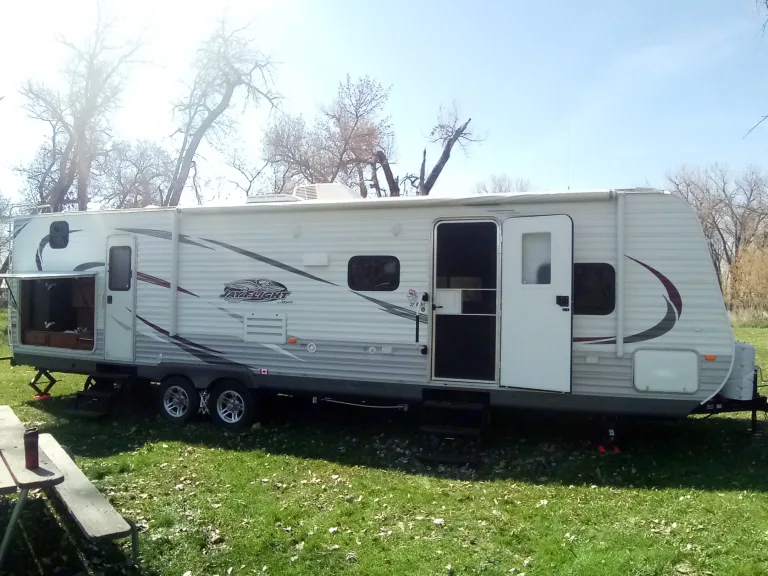 Two slide camper with bunk house with outdoor kitchen sleeps 10.