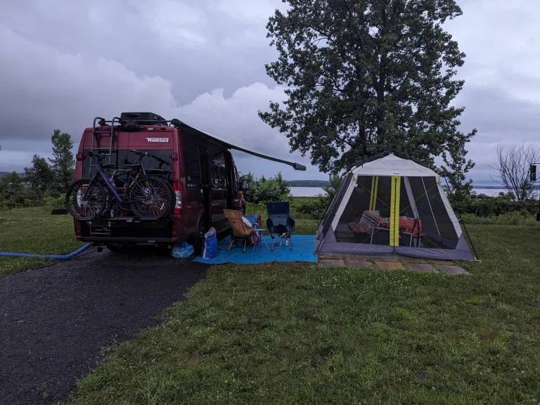 Travacello is a Class B Travato GL camping van with enhanced electronics to include the 4 cell Volta lithium battery system, optional Starlink In-Motion satellite internet and-or optional 5G cellular internet. It can last for days to a week without plugging in, depending on use. No generator to deal with...Travacello also has a fold-down full-size bed for 2 with optional front cab air mattress 30x65 for a 3rd person, induction stove with included pans that will work with the stove, microwave, AC, heat, boosted hot water, bike rack for 2 bikes, TV, Bluetooth speaker-soundbar, 6.0 cu ft refrigerator-freezer, remote controlled ventilator fan with rain shield, powered awning with lights, and more...In addition to elsewhere listed amenities other items are provided such as linens, camping chairs, camping table, Keurig single cup coffee maker, 2 slice toaster, upgraded kitchen faucet and shower head, and many offered add-ons.Travacello is great to drive with great safety features and is easy to drive with minimal impact from side winds or truck passing on highways on your way to your RV-cation.What's includedIn addition to elsewhere listed amenities, other items are provided such as linens, camping chairs, camping table, Keurig single cup coffee maker, 2 slice toaster, upgraded kitchen faucet and shower head, and many offered add-ons.RecommendationsIf staying in the area, there are plenty of state parks, including Claytor Lake and Hungry Mother that are awesome. If just wanting a nice hike to a waterfall that doesn't include camping, Cascade Falls is wonderful, too. Or for the adventurous types, there are all types of outdoor activities in range including whitewater rafting-kayaking, hiking, or biking - New River Trail is great.Other things to noteDogs and cats are welcome with add-on fee.