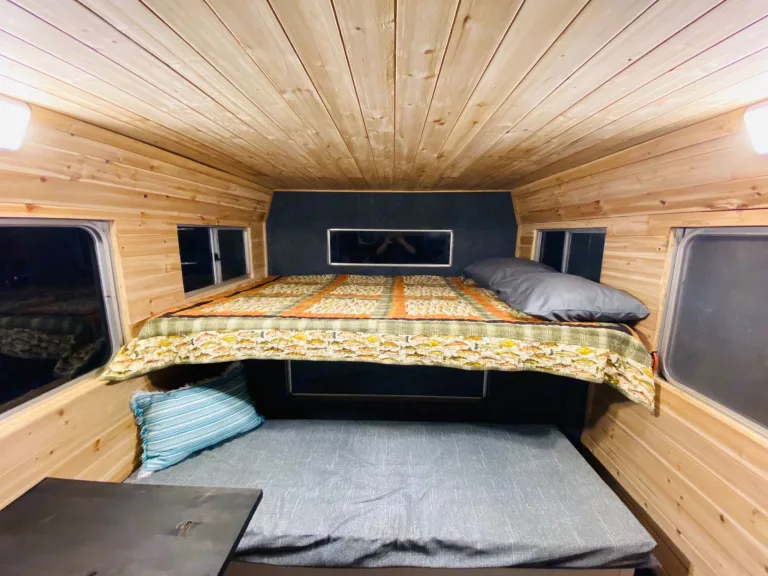 All aluminum, high ground clearance trailer. Built with simplicity in mind. You won’t find another camper trailer this big, that is this light. It never fails to be the coolest camper in the park, or on the mountain.Cedar interior both looks great and keeps the interior free of condensation! Tons of dry storage under the front.Pulls like a dream, and at 1900 pounds it can be used with most small SUV’s, so no need for a large pickup.12v lighting and power system, with inverter for charging and other electrical needs.2” receiver in back for bike racks
