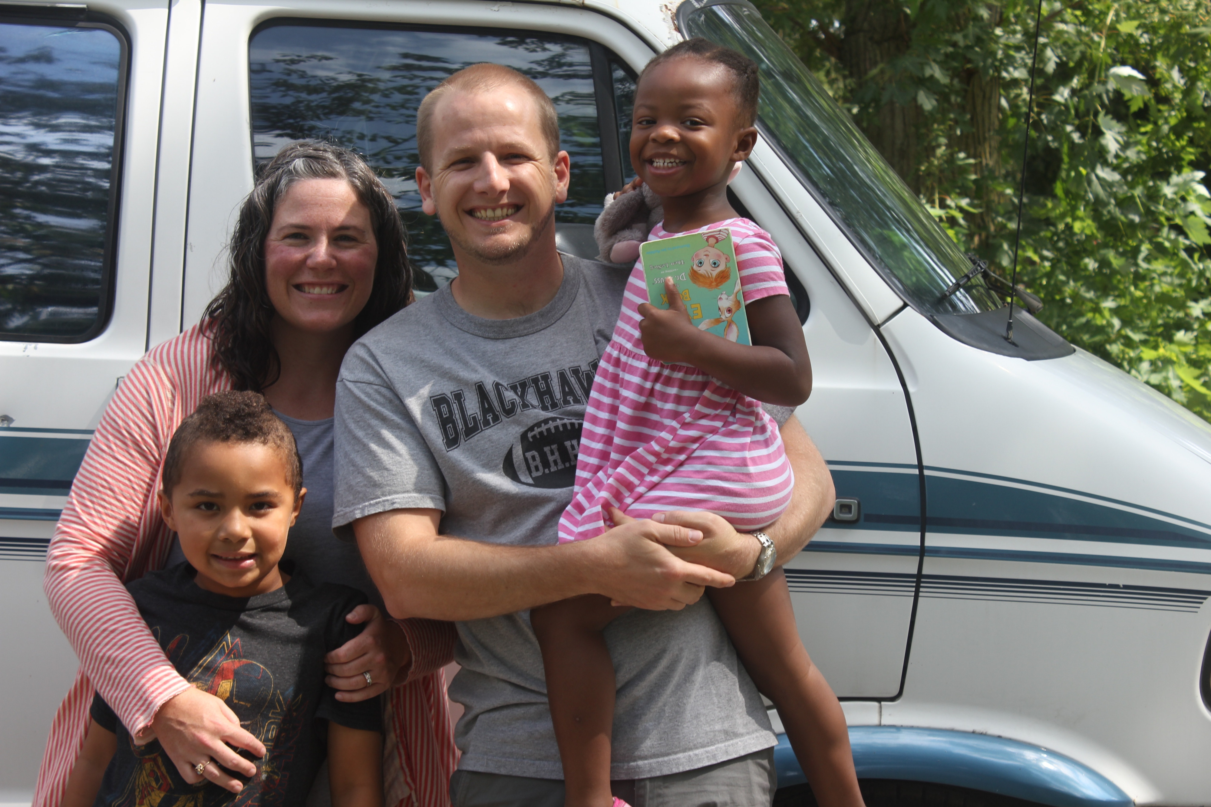 Our camper van is newly renovated with fresh paint, carpet, and full size memory foam mattress, chalkboard wall, and small, removable, table. There are four captains chairs, that fold down into twin beds. The full size bed is in the rear of the van. We installed a roof van, which keeps the van nice and cool, even on warmer days. The seats are comfortable to ride in, and fold down easily. Making it a perfect road trip vehicle. There is plenty of storage for both food and clothes and a working refrigerator. The van comes stocked with everything you need to eat and cook with. We look forward to having you make some great memories in our camper van!