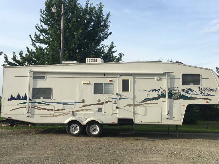 5th Wheel Bunkhouse Camper In Excellent condition. Can sleep up to 8 and Includes sheets, dishes, tv, grill and much more. Has A/c, furnace, 2-way fridge, stove, oven, microwave, awning and stereo.