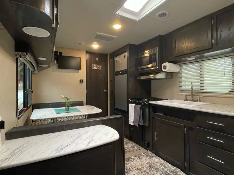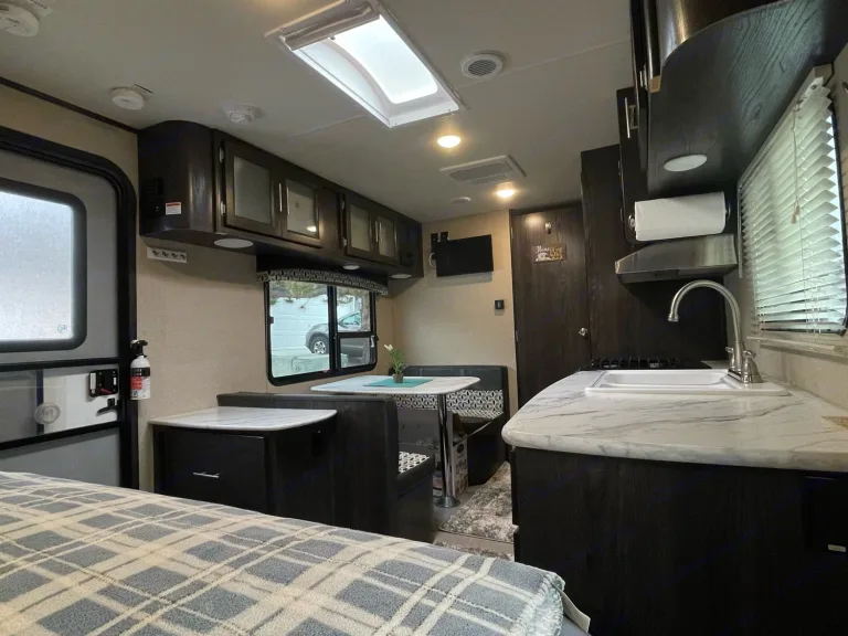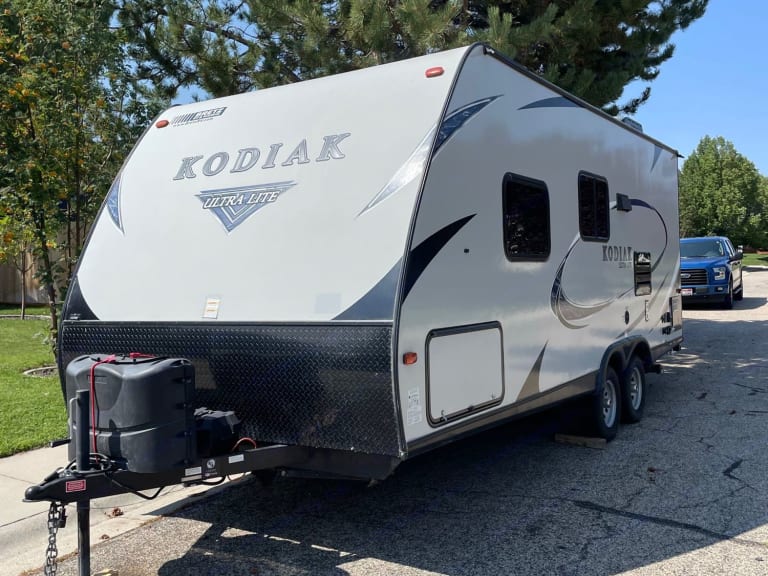 The Idaho Explorer is geared up for your next adventure. At a little under 4000 lbs dry, this camper can be towed by most large suvs and half ton trucks with ease. A comfy queen bed sleeps 2 and the dinette that could sleep an adult or 2 kids comfortably. AC and Heat work great. The large bathroom makes it comfortable to use and prepare for the days adventure. Relax under the powered awning and listen to music using Bluetooth from your phone. This is our new camper and we are excited to share it with you!Camper is stocked with Dishware, Cookware, Utencials, and cleaning supplies.Please don’t hesitate to ask any questions you may have.
