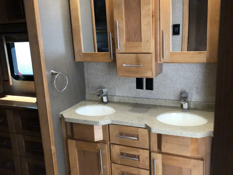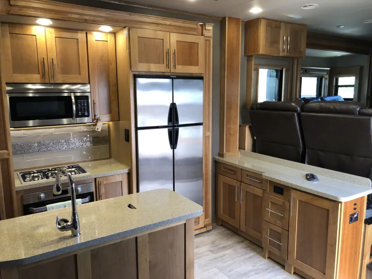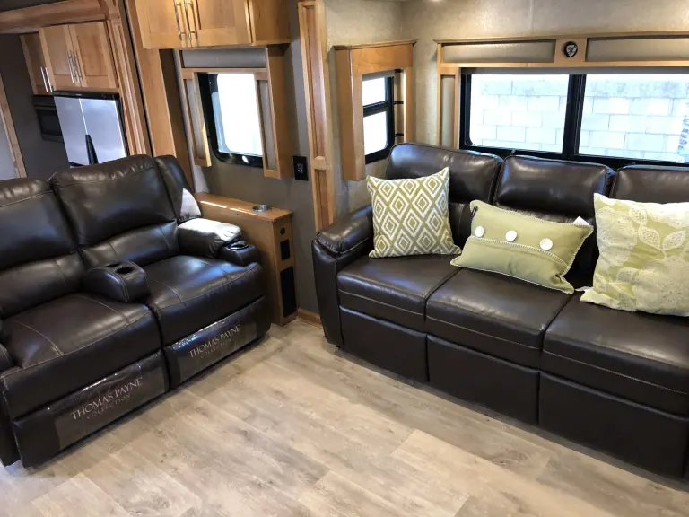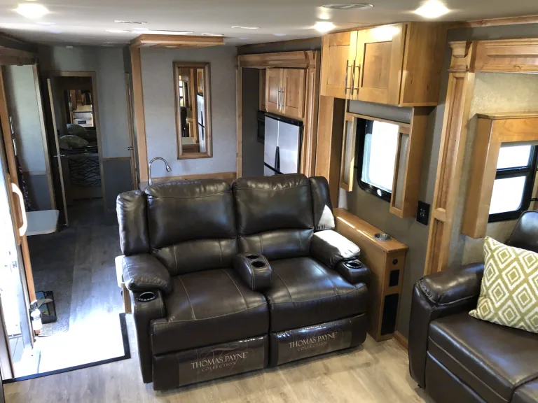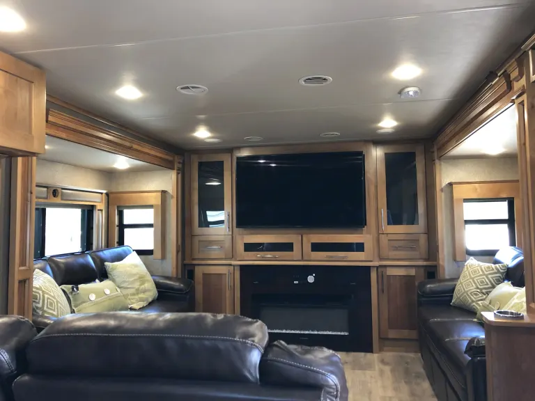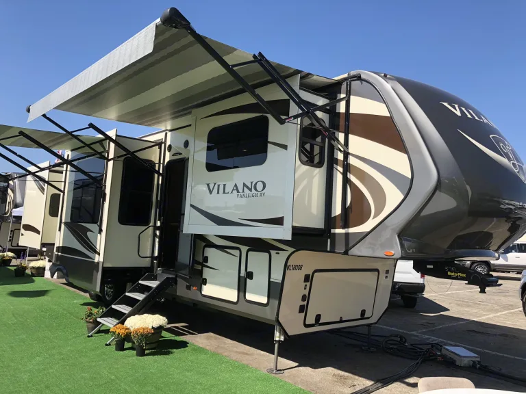 2018 Vilano by Vanleigh 40 foot fifth wheel RV. Sleeps 6, great for family camp trips. 55 inch TV in a spacious front living room. Comes with dish network . Theater type reclining chairs. Kitchen has residential size fridge with ice maker, convection microwave and largest available stove top oven. Master bedroom has king size bed with TV. Outdoor grill and pizza oven also on board for your culinary need. RV is "tech current" USB plugs throughout. Bluetooth your favorite music from your favorite sources through the entertainment center and listen through speakers located throughout including outdoor speakers.
