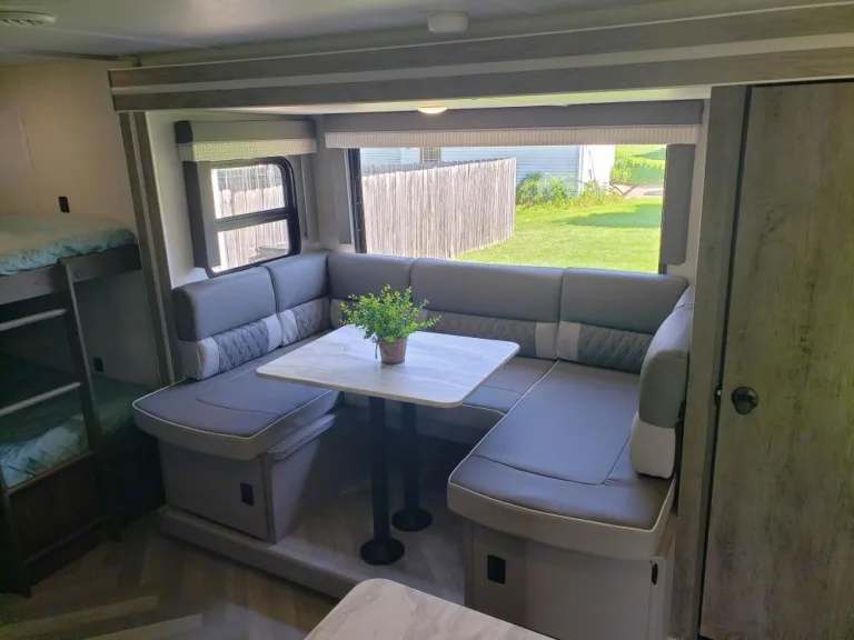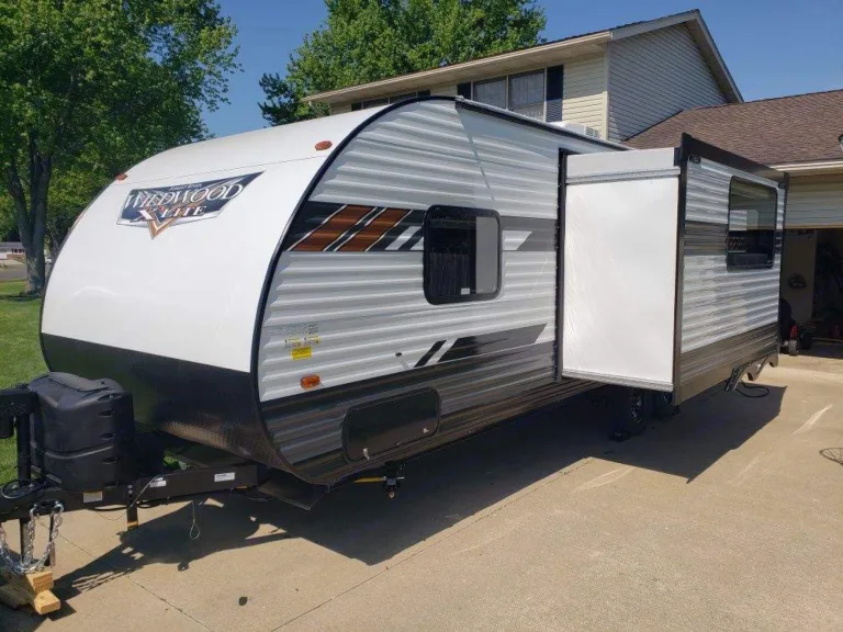 2021 Forest River Wildwood 29ft. This camper sleeps 8 having 1 private bedroom with a queen bed, 2 double bunks with a privacy curtain, and dinette that also converts to a bed. Enjoy the large awning. Bluetooth speaker capability inside and out. This camper is weighs under 5,500lbs and is easily towable with many 1500 trucks and larger suv’s.What's includedFresh Linens, many kitchen utensils, coffee pot, pots, pans, and much more