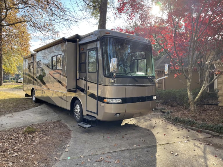 "Big Boss" is a low mileage(less than 8000 miles) Monaco Diplomat PDQ. Fully equipped with a king-sized bed, sink, gas burner,microwave, 2 ac units, and full size refrigerator. Tons of storage space underneath for all of your adventure gear!Big Boss has a furnace/water heater system and an onan generator. This 400 hp diesel lacks no power. this RV is perfect for your ultimate road trip!!! Outdoor entertainment system outside RVWhat's included2X camp chairs, camping table, linens,cookware, utensils. Delivery and pickup within 100 mi radius available upon requestOther things to noteSmall pets allowed!