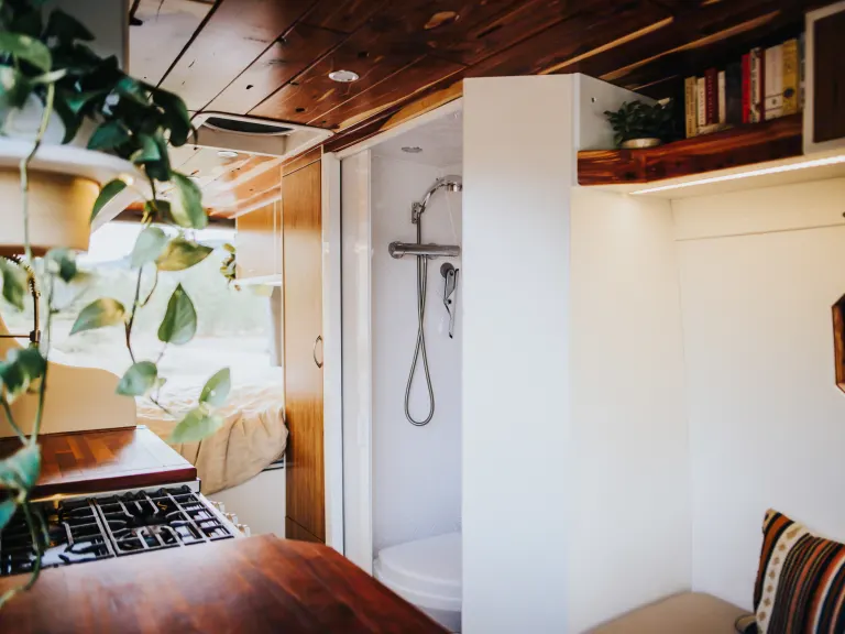 This is a completely custom modern van conversion. You won't find another RV like this one.Complete with on demand hot water and indoor and outdoor shower, composting toilet and yes, a farmhouse sink. You have to see this one to believe it. But to truly appreciate it, you have to know about what you can't see like heated floors, a 400 AH battery bank to keep everything climate controlled even in the coldest places. What's includedPots & Pans
