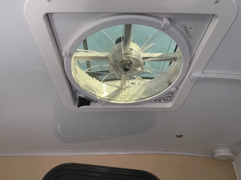 MaxxAir 6200 All Weather Fan - 10 speeds w/reverse, thermostat, and controllerGalley -Stainless steel pull out 2 burner propane stove with glass top