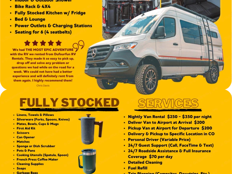 We had an incredible adventure with our van! The host was very communicative, even checking in during the trip to make sure everything was good. We had a small van issue that he found when he was walking us through the vehicle and he got it fixed immediately. The van was exactly as advertised. Super clean, easy to operate and comfortable. This was our first camper van trip and it won’t be our last because of this experience. They had just enough extras that we didn’t have to rush out to a store to buy kitchen gear. Awesome bug screens, sun awning, bed, window coverings and camping chairs. We have already told numerous friends and relatives about Outdoorsy and this van! Just an incredible adventure.