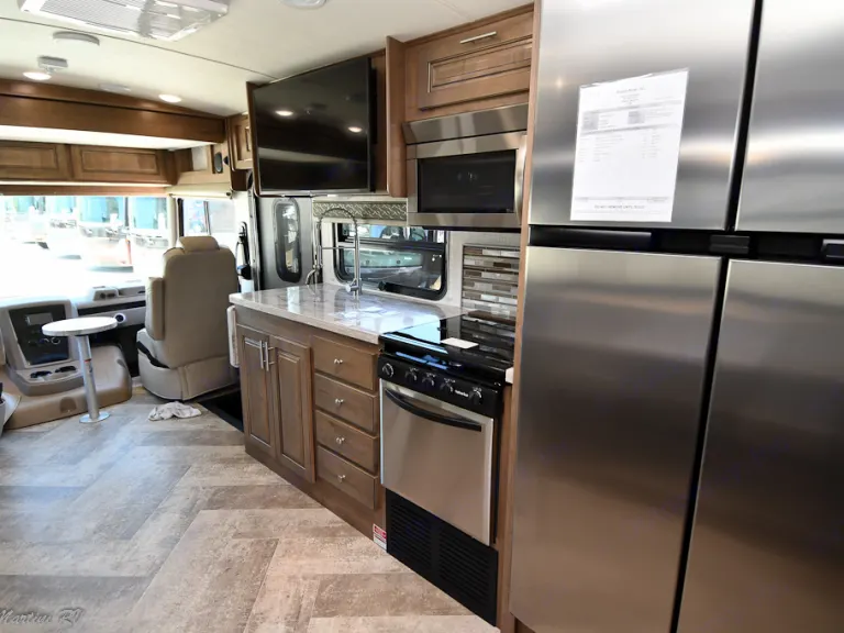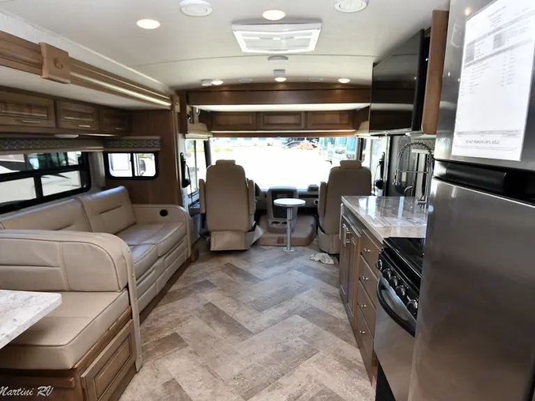 This Motorhome is brand new! We just purchased it, summer of 2020 new off the lot. We love how easy and smooth it is to drive. If you are new to a class A, you have nothing to worry about. These new coaches drive so smooth and have cameras that will show you Both sides of the motorhome as well as the back. No worries about blind spots or tight roads. And we are happy to give you a quick driving lesson if you have any questions.