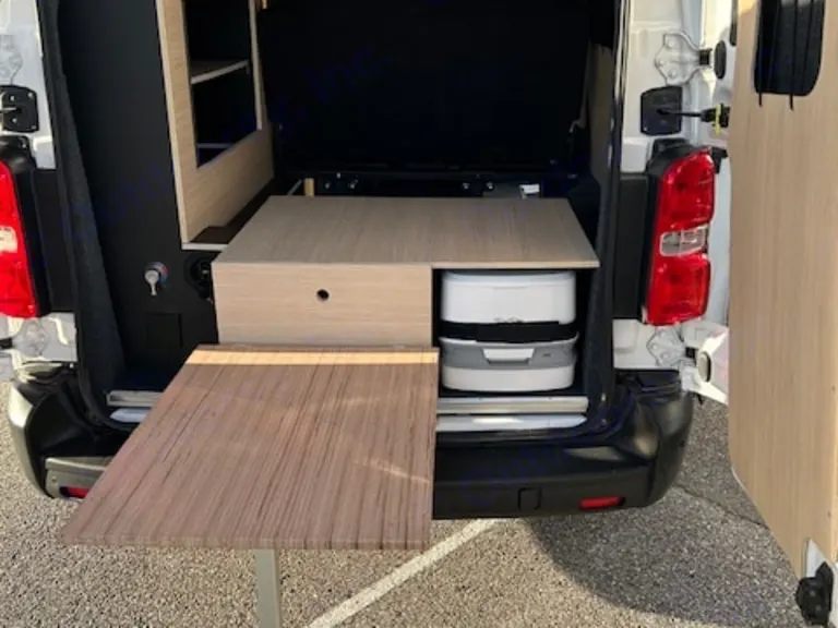 Imaginé et réalisé avec passion dans notre atelier de Bourg-Lès-Valence, il a été conçu pour montrer tout ce qu’on sait faire de mieux.Autant dire qu’on s’est fait plaisir : toit relevable, banquette 2 places convertible en lit, sièges avant pivotants, chauffe-eau, plaque à induction…