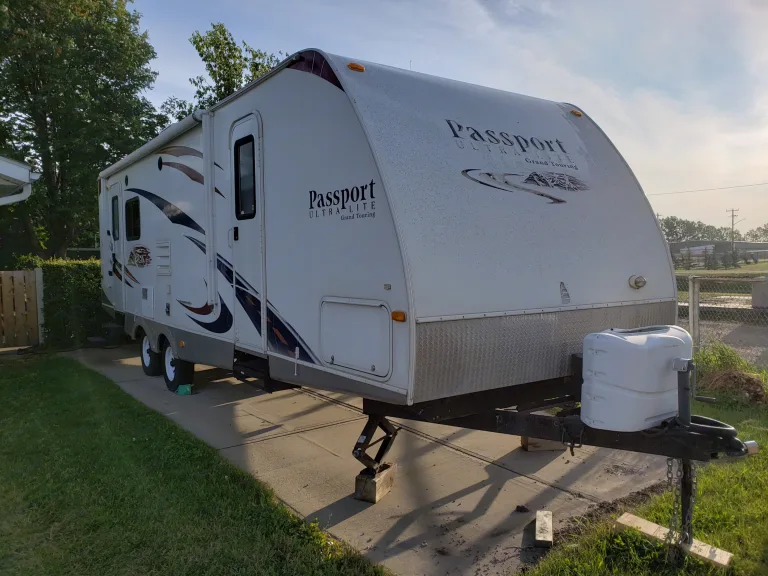 28 foot pull behind camper with full kitchen tv indoor outdoor stereo awning full bathroom