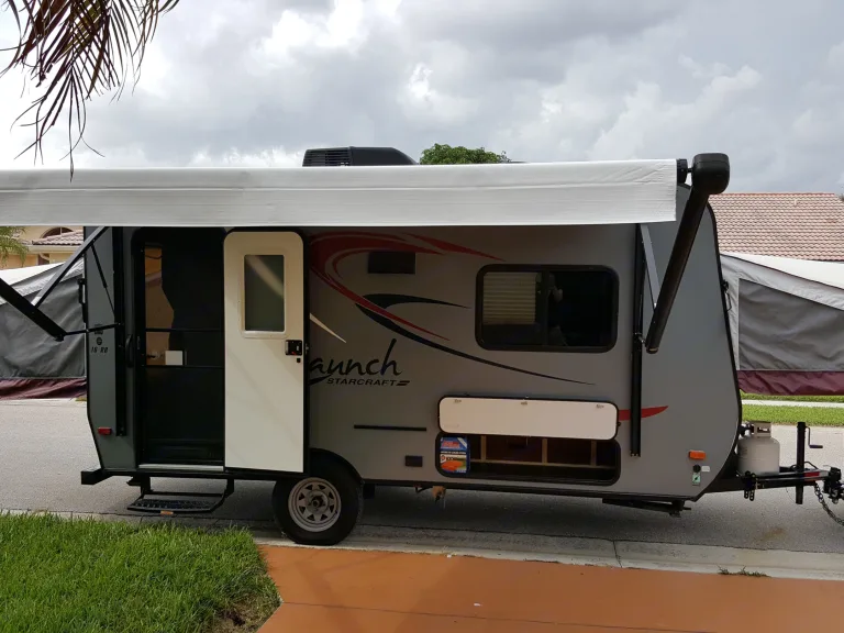 Our camper is affordable, light weight, easy to tow and sleeps 6. Set up is simple...beds fold out in a snap and awning is electric with led lights. There are plenty of windows to enjoy your view...you feel like you are camping, but with all the comforts of home including ac/furnace, radio/dvd and cable hook up, microwave, 2 burner stove top, coffee pot, freezer/refrigerator, full bath with toilet, shower, sink with vanity and lots of storage throughout! Enjoy our hybrid for your next camping adventure!