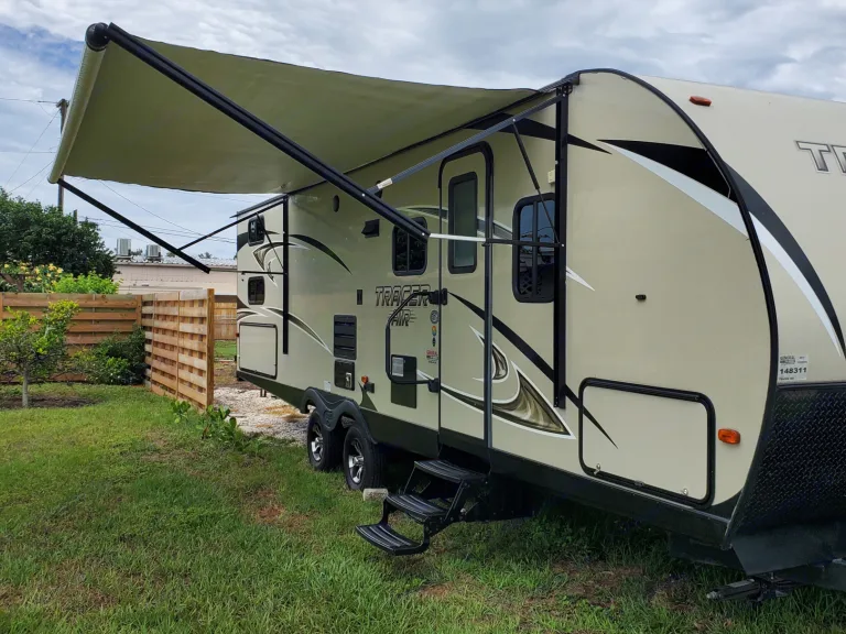 This is the Perfect travel trailer for your family or large group. Great for both a short weekend or a long haul across the great outdoors. As you enter the generous single slide Tracer AIR you will find a front sleeping area, a large living space with a 49" TV, sofa, dinette, full bathroom and a rear bunk house.The outdoor storage is in both the front and back of the trailer with a large complete pass through storage compartment along the front of the trailer. This trailer is also very light weight and can be towed by your 150/1500 as it is just over 6,000 lbs. dry.To the left of the entrance there is a double kitchen sink, three burner range, and refrigerator. We will provide all the essentials needed for your trip including cookware, dishes, utensils, flatware and cups. On the opposite side of the trailer the slide has a dinette and a hide-a-bed sofa. Next to the slide there is a nice size pantry for your dry goods. You will surely enjoy watching TV, movies or listening to music at the entertainment center which is bluetooth compatible.After a long day outside you can retreat to the front bedroom where you will find a queen bed, a closet to hang clothes on both sides of the bed and an overhead cabinet with a storage area that runs the width of the trailer.Proceeding toward the rear of the trailer to the left is the three piece bathroom with a toilet, sink, and shower/tub combo.In the rear bunk house you have four generous sleeping areas complete with individual lights and windows for comfort. Two bunks are full size and two are twin. In between the bunks there is a wardrobe which provides additional storage with four separate sections (one for each bunk occupant).Outside you can enjoy the outdoor kitchen which has a refrigerator, two burner cook top and a sink. There is also a rear bumper grill that swings to the outdoor kitchen sink to round out your cooking experience. There is a generous shelf for storing all the essentials, it doesn't get easier than that. The generous push button retractable awning provides plenty of shade during the warm days, and an LED light strip that runs the length of the awning for comfortable ambiance at night. The factory installed stereo system also has speakers outside so you can listen to your favorite music while enjoying time under the sun and stars.Plus more! Please call or message me to schedule a showing of the trailer or simply schedule a reservation. We are happy to accommodate and look forward to talking with you soon. We hope this will be the perfect "home away from home" for you and your family or group.