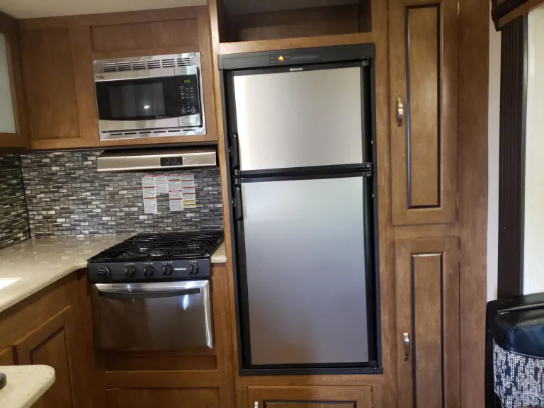 Fridge and stove works great TV with exterior antenna and radio with cd works great