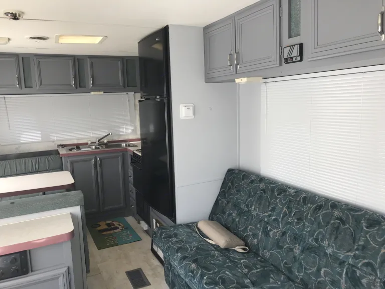 A very comfortable 5th wheel that has been remodeled and has all amenities, BBQ, Generator, House grade mattress. If you don't own a vehicle to tow a larger trailer I can deliver and set up our trailer for you within 150 Km of Brantford, Ontario. The trailer has a bike rack on the rear with a BBQ stand. Air conditioning.