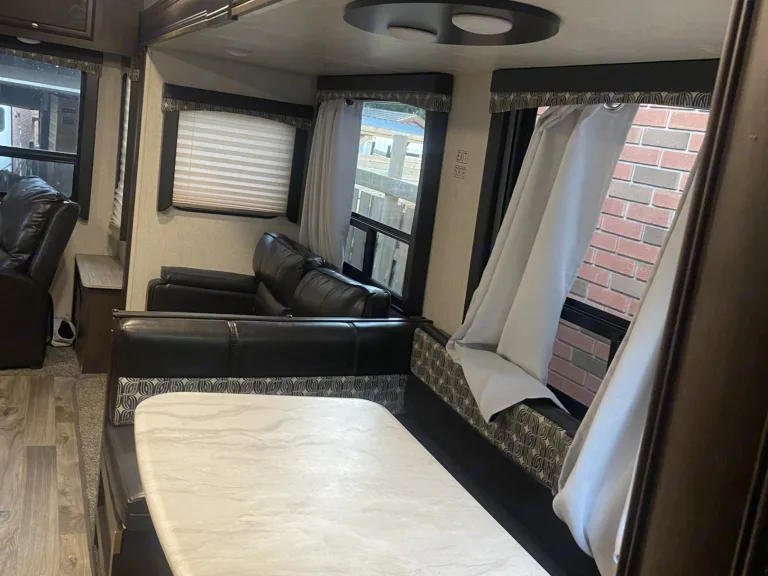 1 booth (converts to bed), queen size bed in master bedroom Fridge runs on gas or electricity Water heater runs on gas or electricity Sleeps 6What's included• No bedding included