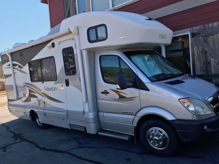 2010 compact Itasca Navion is easy to drive and park, yet has a full kitchen and bath, couch and dinette and sleeps 6. This RV was equipped to explore the west with solar panels, navigation system, bike rack, satellite, and an inverter and extra batteries so that shore power is seldom needed. Only 40,000 miles on this vehicle, new tires, it looks and runs great on efficient Diesel power.