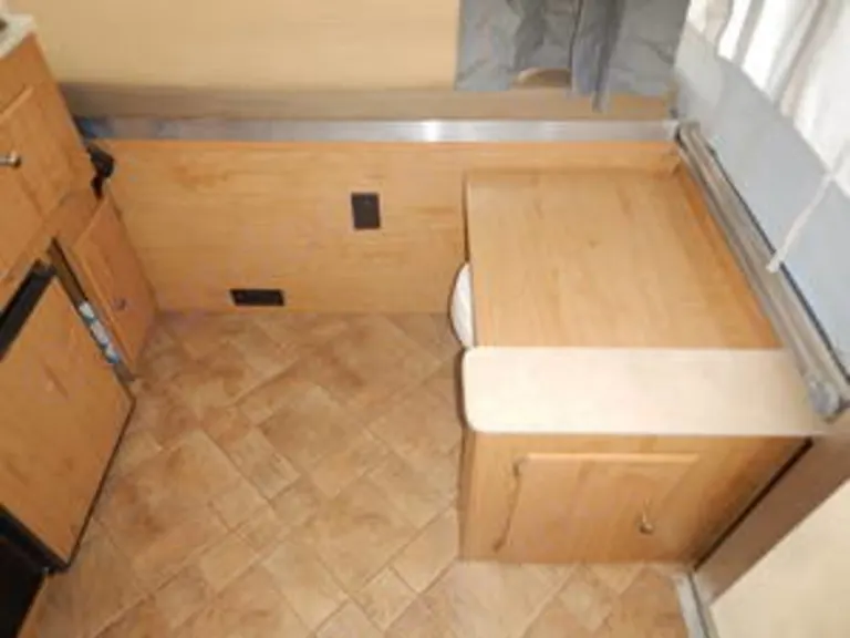 very low step entry, dinette conversion with removable table for excess room or convert into a sleep station. Two slide out beds with plenty of room for two adults. refrigerator can run on 12v,shore power, propane, 12v w/propane furnace