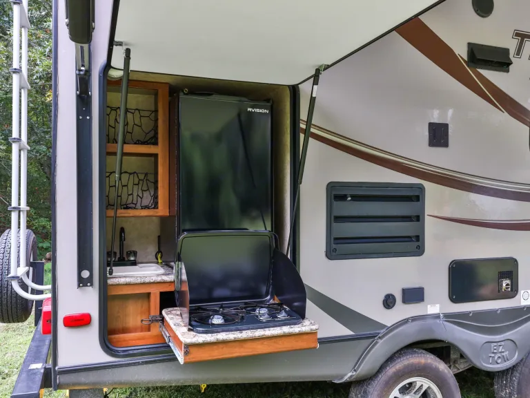 Enjoy the outdoors with the secondary outside kitchen, or relax inside listening to your favorite music via bluetooth or put on your favorite dvd/tv show or play some of the included board games. Enjoy the beautiful outdoors while having all the luxuries of home away from home.After a day of exploring and adventuring, come back to your private sleeping quarters and relaxation is absolutely guaranteed!Featuring all of the amenities of a modern home and plenty of storage; it will be easy to make this Island Retreat your home away from home.Available for rent during all seasons as we upgraded our camper with the cold weather package.We are currently only delivering to Campgrounds and State parks in and around Brewster.What's includedIncluded in the rental is the following: