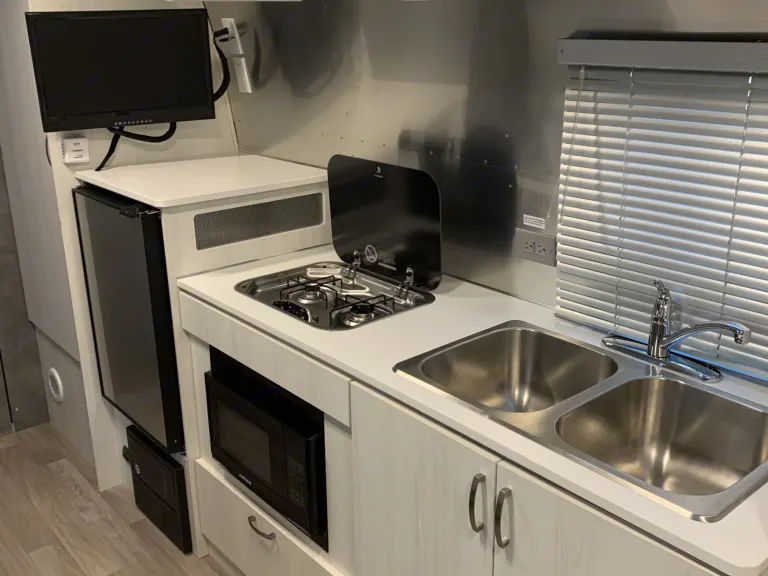 Experience that old time feeling in a new 2021 Airstream Bambi! Our Airstream features a double bed, a convertible table/single bed, and equipped kitchen with eating & cooking utensils included in the rental. Interior and exterior storage space make travelling a breeze.Utilities include shower, toilet, bathroom sink, propane stove, refrigerator with freezer nook, microwave, 30 amp electricity hookup, 2 propane tanks, cable cord, solar powered battery, heating, air conditioning, two ventilation fans, bluetooth enabled stereo, and TV.Enhanced cleanliness standards are completed between each renter. In addition, sanitation products are provided during the rental period.Pickup & Drop off times are defined at the time of booking. We do not offer delivery.What's includedIncluded in the rental: